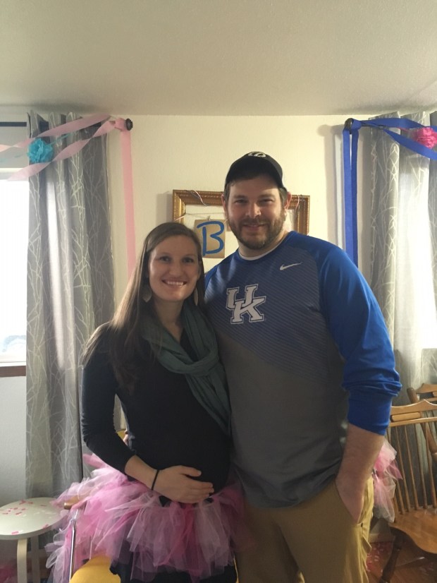 Anyways – It was kind of crazy to know that some of our best friends knew what our baby was before we did, but I was OK with that. Saturday morning was amazing. Trav & Kel went all out and killed it with the party! They made tutus and ties and upon party entry you had to choose what you thought the baby gender was and wear the appropriate tutu or tie. I loved it. Of course, I grabbed a tie and Brice grabbed a tutu.