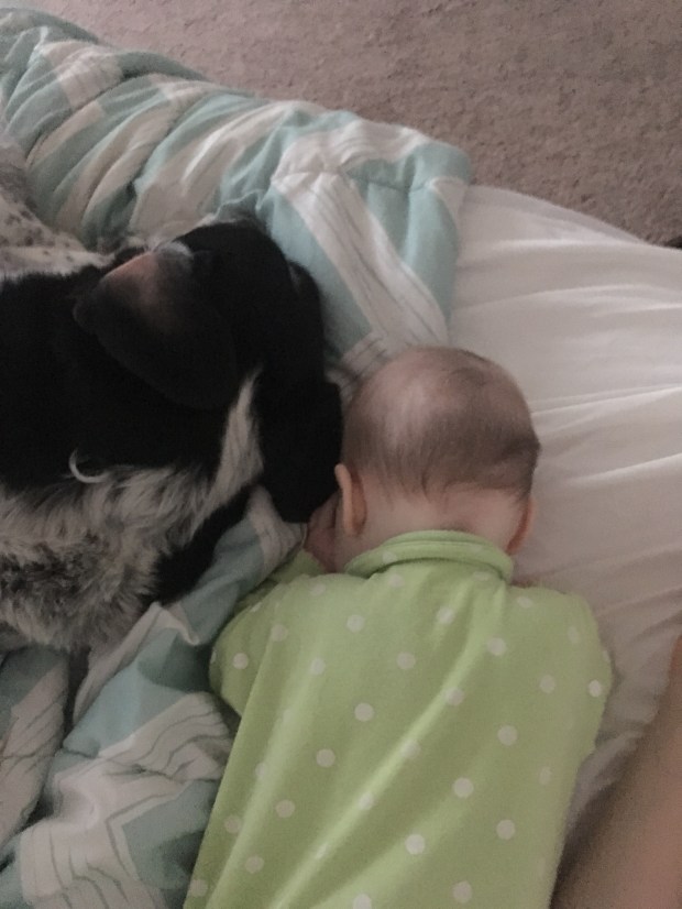 She’s learning to sleep in on the weekends! This is probably the closest Sharma has let her get to snuggling him.