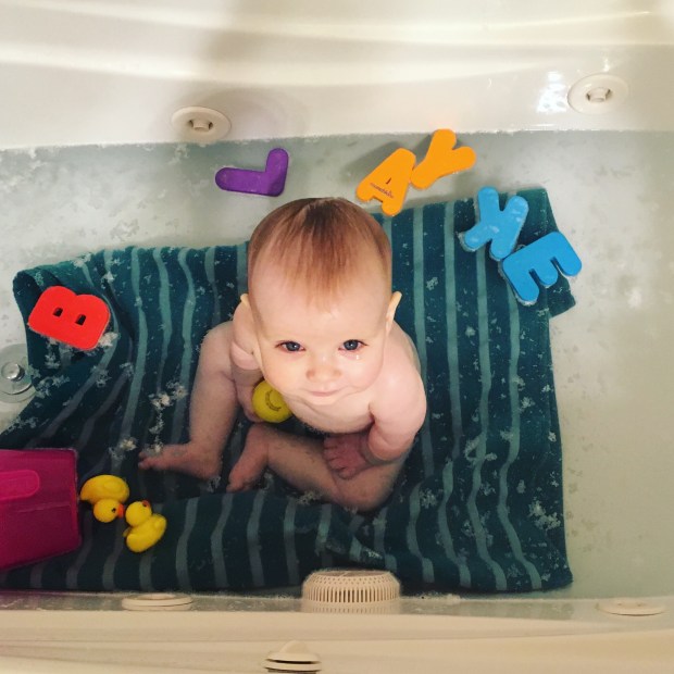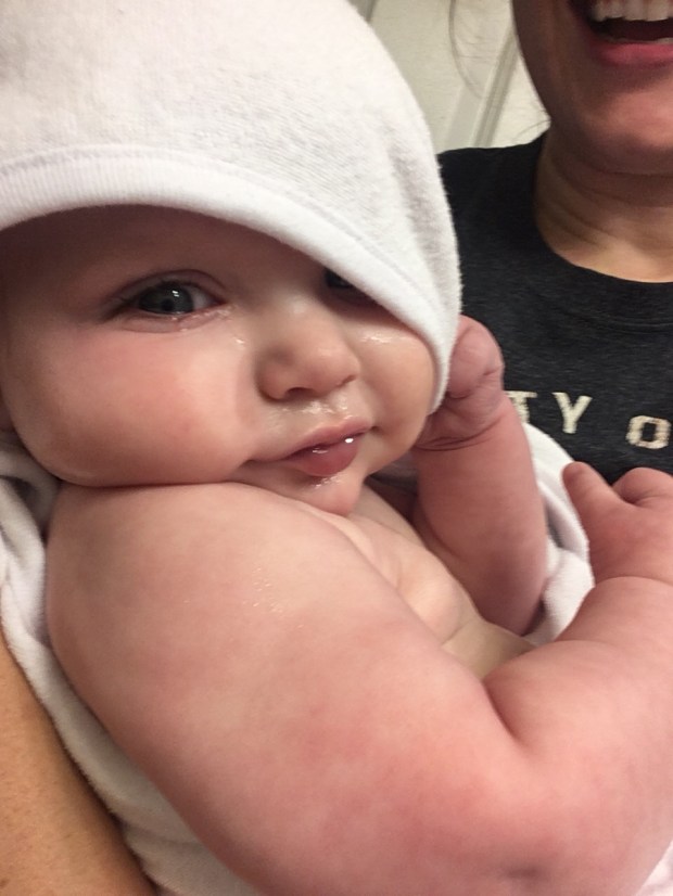 After bath time, she loves being snuggled up in towels. Brice even puts them in the dryer pre-bath so she gets a fresh toasty towel to dry off with!