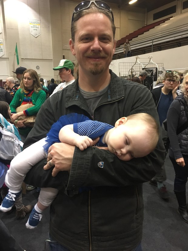 Swap meets are just too much – plus Uncle Travis made the BEST pillow (she slept like this for about 45 mins. Snoring, drooling, the whole shebang)