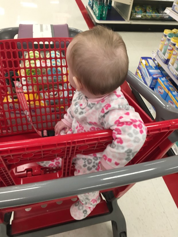 Chillin’ on her first cart ride – Target is so cool!