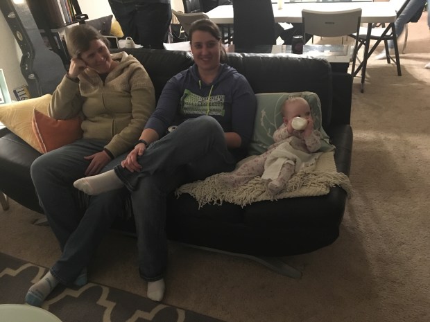 Best Buddies Auntie Allison & Auntie Erin – she’s so relaxed!