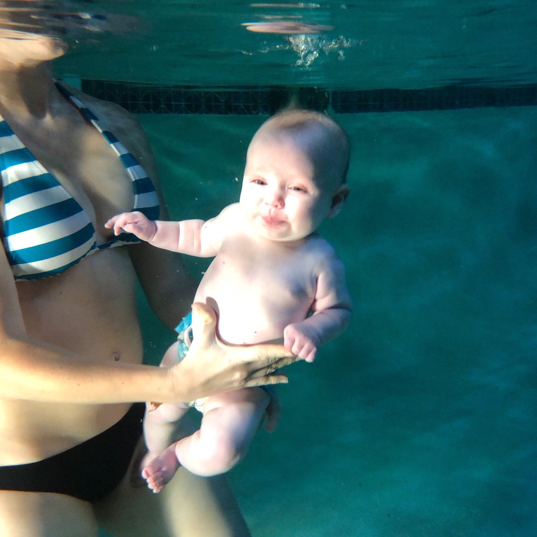 First time swimming & underwater (3 months old)